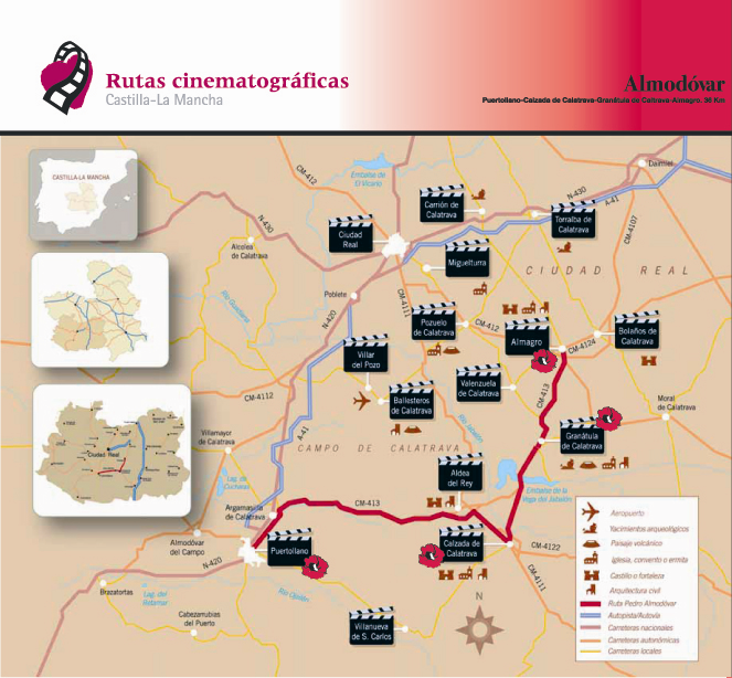 Le parcours de Pedro Almodovar les principales villes de Almagro, Granatula de Calatrava, Aldea del Rey, Calzada de Calatrava et Puertollano ( à la place de certains de leurs films) …